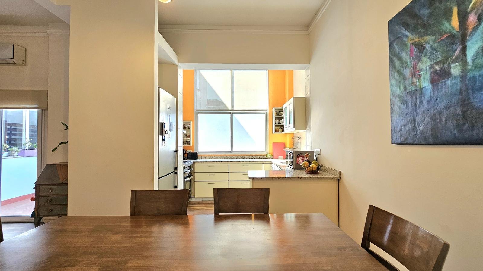 A la unidad se accede por un pequeño pasillo donde se encuentra el acceso a la escalera propia que conduce a los pisos 1 y 2 del inmueble.