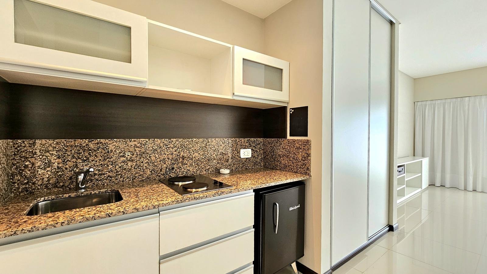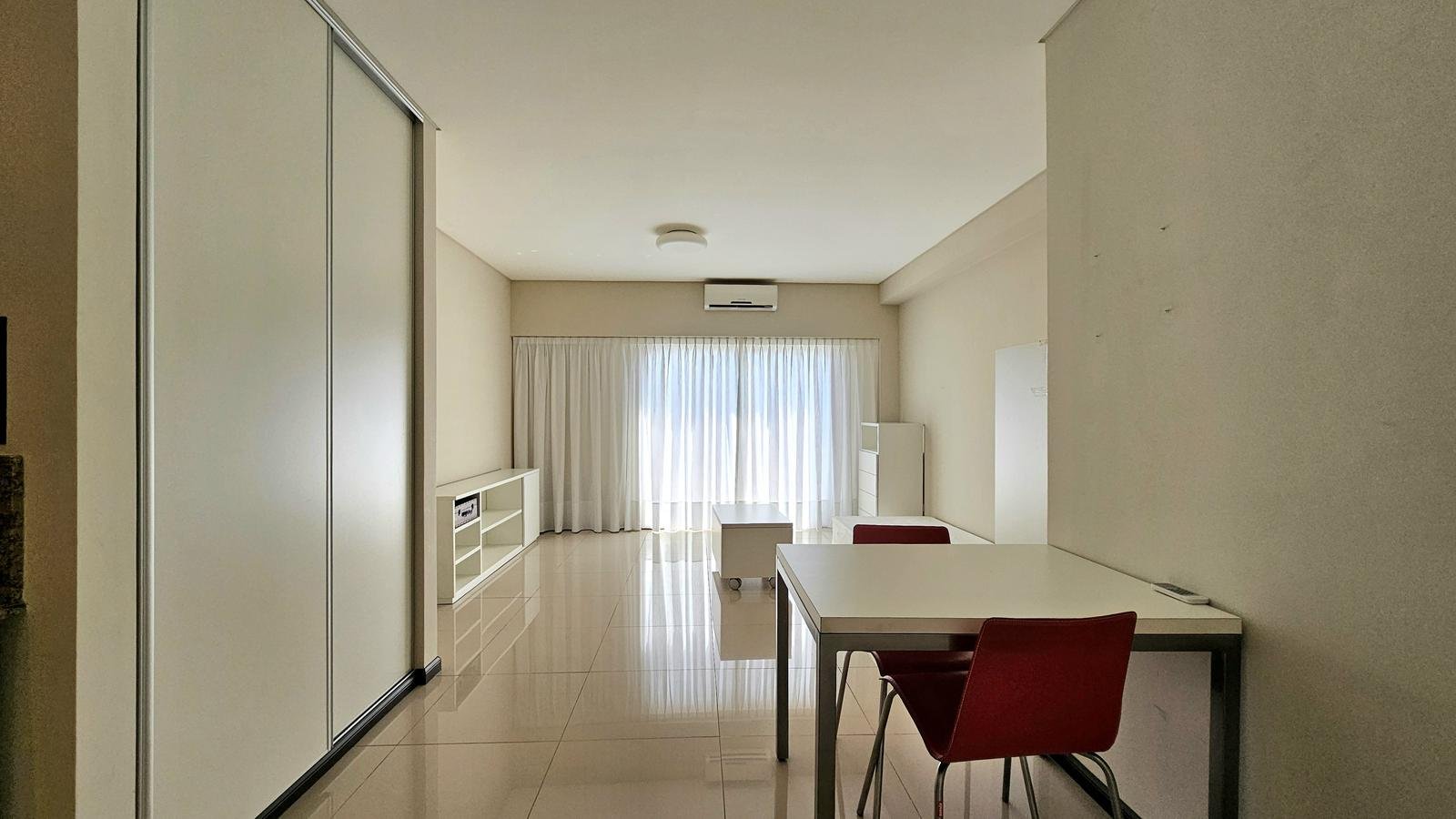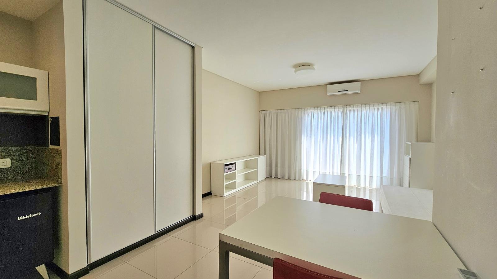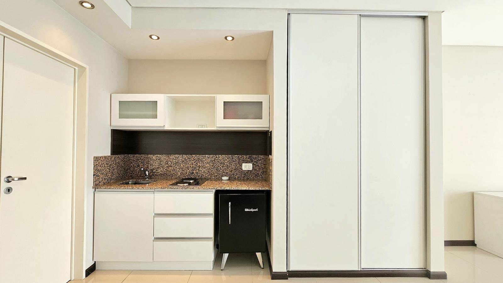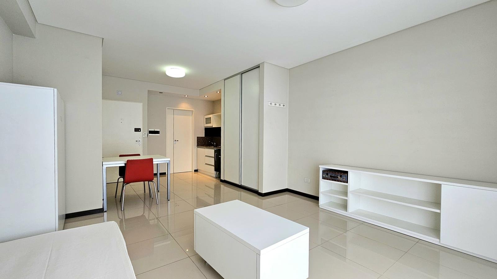 Posee placard, cocina americana con muebles bajomesada y alacena. Baño completo. Puerta blindada.