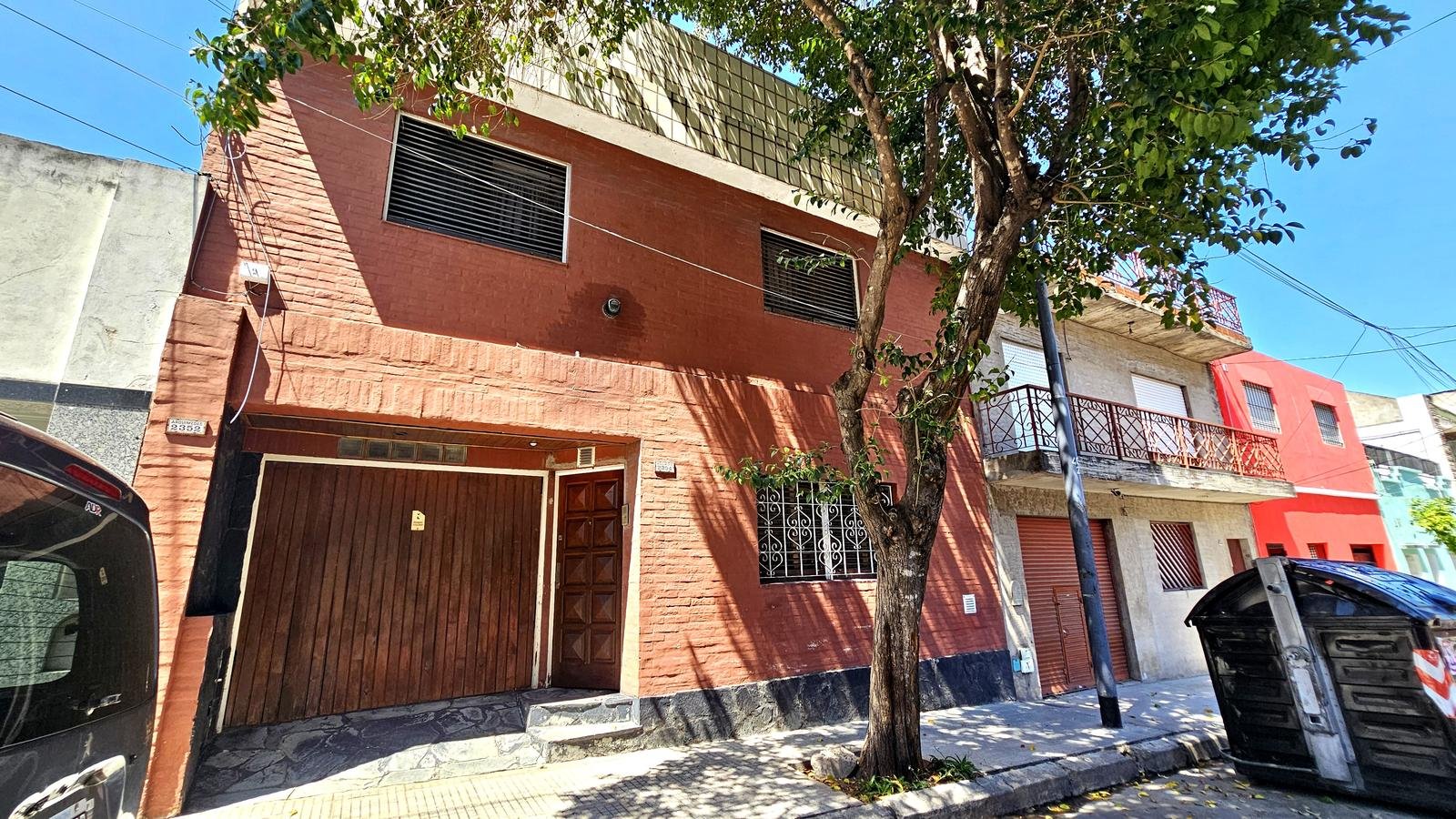 Casa sobre terreno propio de 8.03 de frente y 17.31m de fondo. El frente presenta una puerta de acceso a la vivienda y un portón de garage.