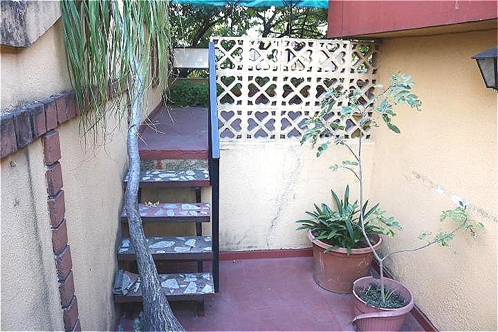 Posee dos plantas. En el primer piso se encuentra el comedor, cocina con comedor diario, toilette, dependencia de servicio y salida al patio. Luego en un entrepiso se encuentra el Living, y una escalera que dirige a los dormitorios. Por el primer dormitorio se puede acceder a la terraza con parrilla, y por el tercer dormitorio a un balcón que da al patio del primer piso.
