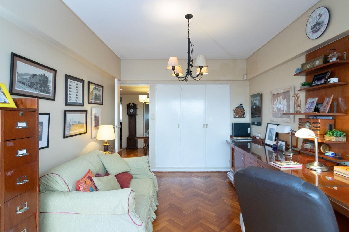 El departamento, ubicado en un piso 14° con vista panorámica y mucha luminosidad, cuenta entrada principal con palier privado, entrada de servicio, amplio living, comedor por separado, balcón terraza al frente, 4 dormitorios, dos baños completo, un baño de servicio, dos dependencias, cocina, comedor diario independiente y lavadero.