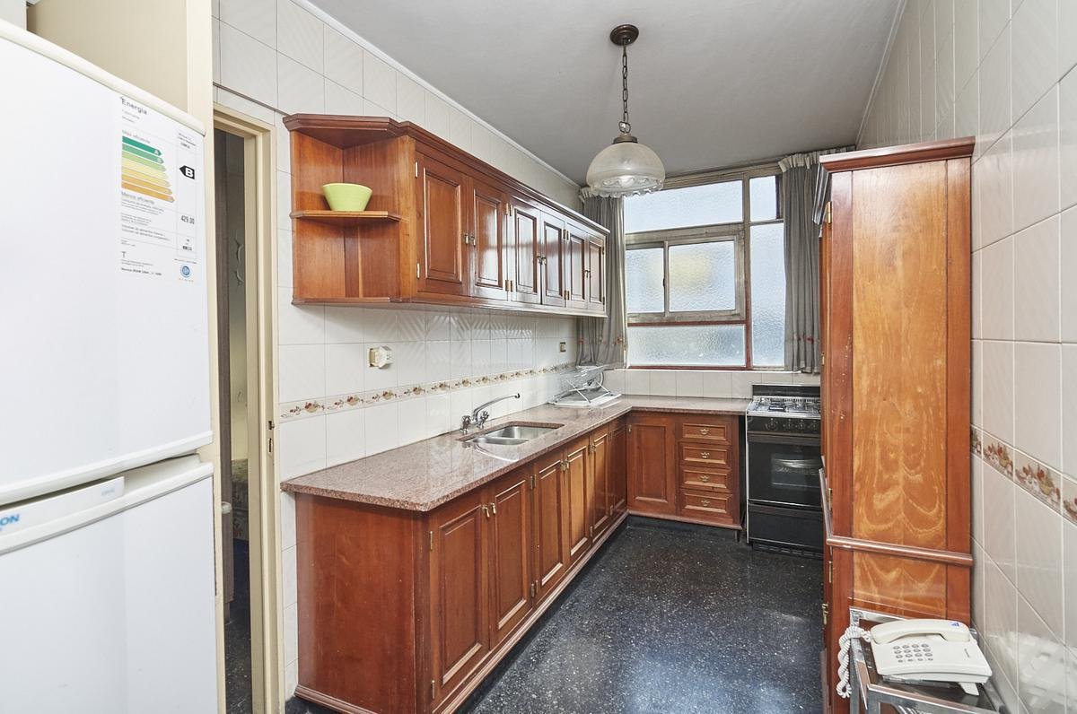 Departamento conformado por living-comedor en L, 3 amplios dormitorios, dos baños completos, cocina, comedor diario, lavadero independiente, dependencia y baño de servicio. Cochera fija cubierta y baulera.
